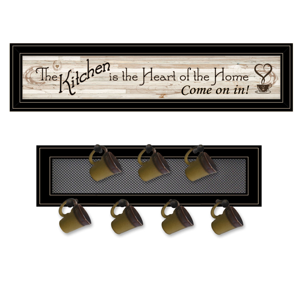 V431-MPH-704G "Kitchen is the Heart of the Home" black framed grouping of 2 pieces(33x8 Kitchen framed print & a 27x8 Mug Rack(mugs not included) with 7 pegs for you to hang: mugs, keys, towels, string of double hung candles. The beautiful framed print: "Kitchen is the Heart of the Home" remains on the top selling list. The print invites family and friends to come in, sit down and relax in your Kitchen. Print has a protective, textured finish so no glass is needed. The print arrives ready to hang. Made in the USA by skilled American workers.•Textured Artwork with a 'rolled on' acid free acrylic coating to create a canvas painting effect. No glass is necessary.•Surface of the print has a fade resistant coating.•Arrives Ready to Hang•Woman Owned Business (WBE)•Handmade in the USA•Decorative Moulding adds natural beauty to the framed art.