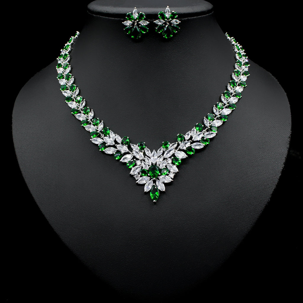 Color: white zirconium white suit (necklace+earrings), rose red white suit (necklace+earrings), sapphire white suit (necklace+earrings), green white suit (necklace+earrings), colorful zirconium white suit (necklace+earrings), yellow zirconium white suit (necklace+earrings)