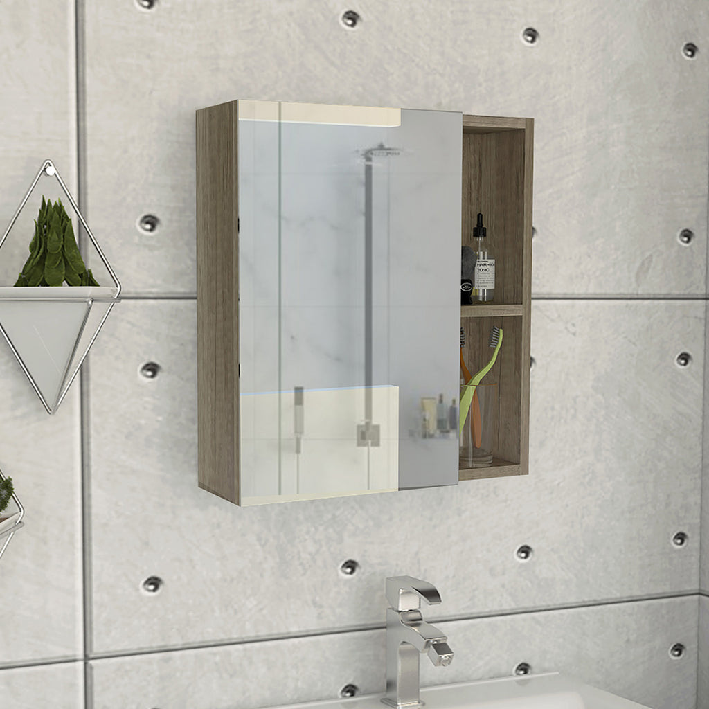 Elegant functionality is what best describes the Tuhome Labelle medicine cabinet; a stunning weathered oak manufactured wood finish and an ample mirrored cabinet door with multiple interior shelves will provide you with an excellent product for your bathroom. Three concealed shelves and two more open shelves will help you keep things organized and handy while looking fabulous.Product dimensions (36; 2''W X 31''D X 36; 2'')