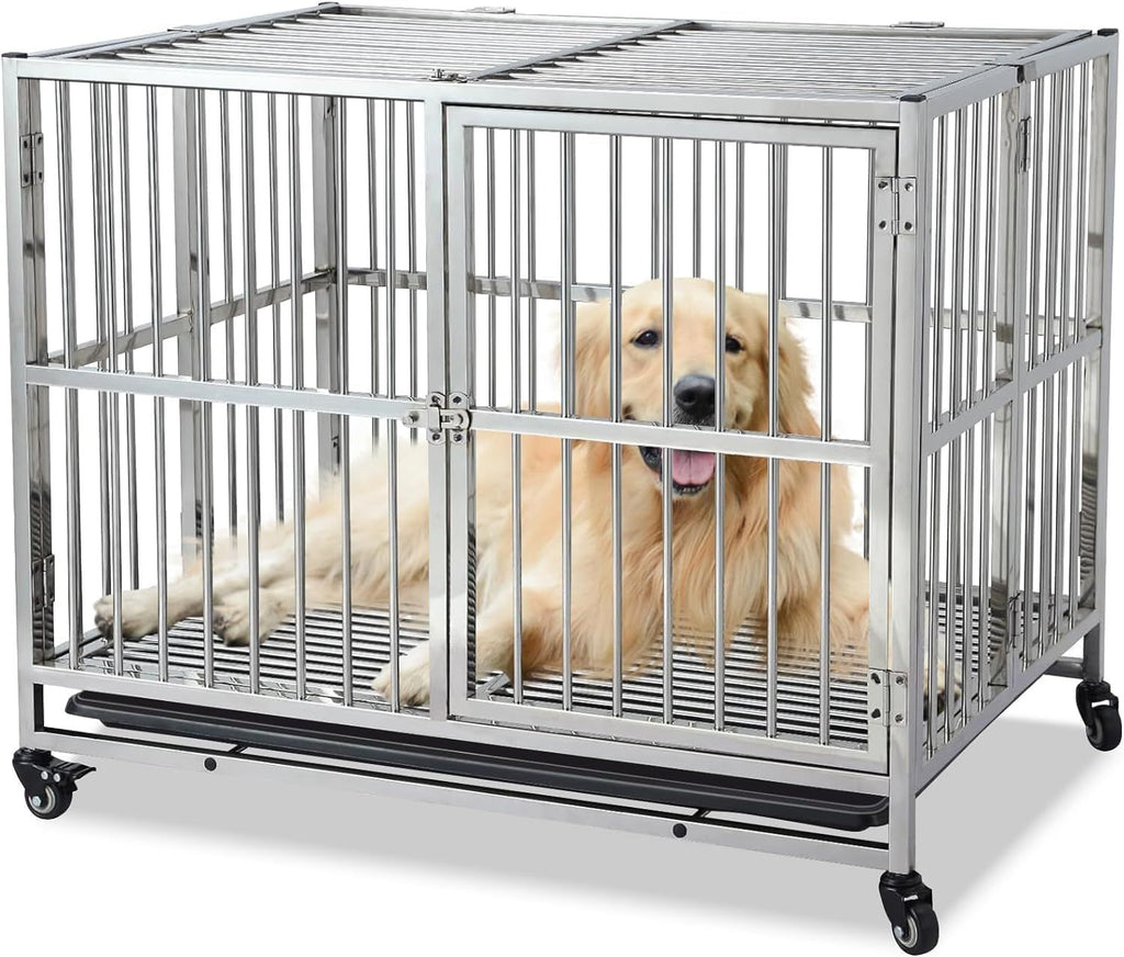 5.Easy To Clean Large Dog Kennel:42 inch dog crate comes with two removable (slide-out) plastic tray helps you to catch the fallen any soiling, and allows you to wipe and clean easily. Easily keeping your fur friend's place clean.