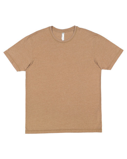 5.7 oz., 48% ringspun cotton, 52% polyester vintage washed jersey; Coverstitched side seams; Self fabric back necktape; Coverstitched hems; EasyTear™ label; The LA T vintage wash collection achieves its authentic look and feel through special dye and mineral wash processes, which creates unique and natural variances in texture, distress, and shade. these are intentional and are not considered defective;