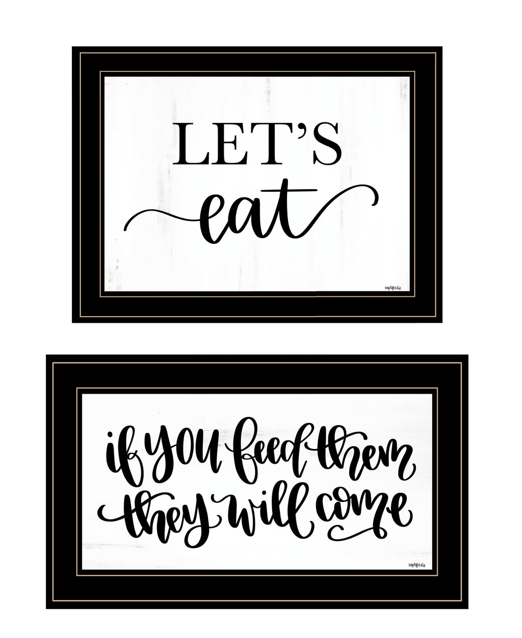 "Let's Eat/Feed Them" Vignette is by Artisan Imperfect Dust. This 2-19"X15" decorative black framed wall art. This simple typography image is a way to add humor to any kitchen or dinning room. With this simple cursive image set with scripts reading "Let's Eat" and "If You Feed Them, They Will Come". Our products are proudly made by skilled American workers. The surface of our framed art is textured with a fade resistant coating, so no glass is necessary. A vegetable-based glue is used in the production of our products, and our frames are crafted from 100% recycled material. In keeping with our environmentally friendly approach towards manufacturing. Arrives ready to hang.•Print has fade resistant surface texture, no glass is necessary•Woman Owned Business (WBE)•Arrives ready to hang, no additional hardware needed on item•individually hand crafted by skilled American workers•Cleaning Instructions: Clean with Soft Dry Cloth Only•Made in U.S.A.•Artwork by American Artist