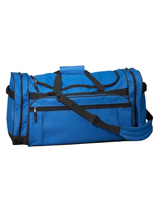600-denier, 50% recycled polyester, 50% polyester; 27" W x 13" H x 14" D; Multi-pocket duffel with U-shaped opening in main compartment; Two large side pockets with zipped down feature ; Adjustable/detachable padded shoulder strap for easy convenience and comfort; Large gusset front pocket for additional storage; Front zipper pocket; Black contrasting webbing; Requires California Prop 65 Warning Label; Each year 5% of Net Operating Income is given to help support a host of social service organizations supporting the homeless, children and veterans and in need. The company supports The Greatest Gift Catalog Ever and their partner agencies. For more information on how to help support these great causes please go to WWW.TGGCE.ORG;