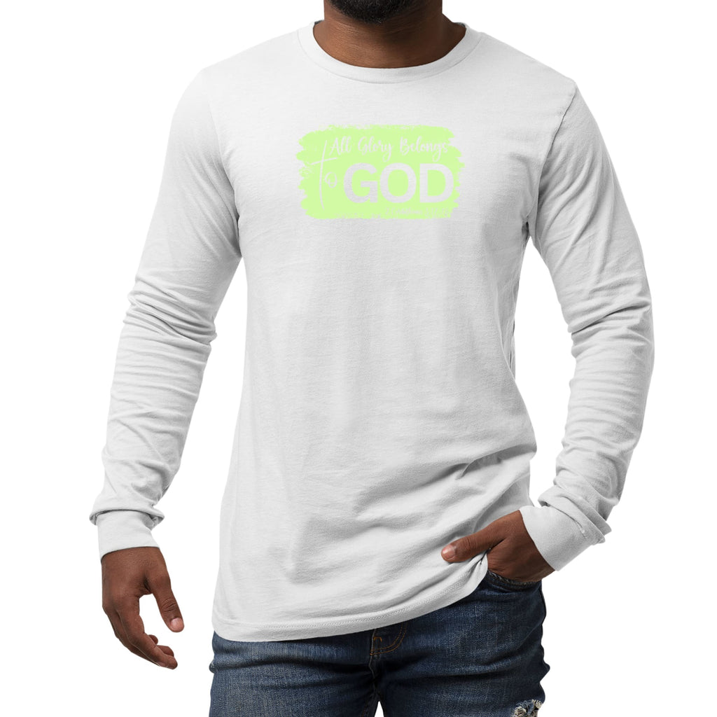 Long Sleeve Graphic T-Shirt, All Glory Belongs To God Christian Neon Illustration. Discover the versatility and style of our Long Sleeve Cotton T-Shirt. This unisex long sleeve t-shirt is designed to be a go-to choice in all seasons, whether it's the perfect fall shirt, a stylish option for spring, or a cozy companion in winter. Crafted from breathable cotton, it combines comfort and fashion effortlessly.