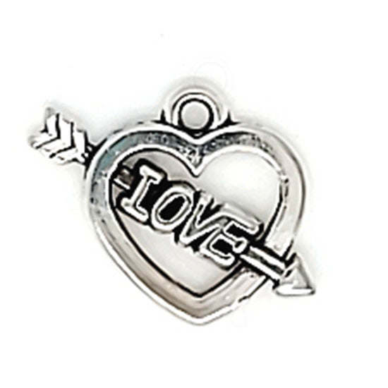 The Wholesale ''Love'' Heart And Arrow Charm is made with lead-safe; nickel-safe; and cadmium-safe zinc-based alloys making it durable; stylish; and affordable!