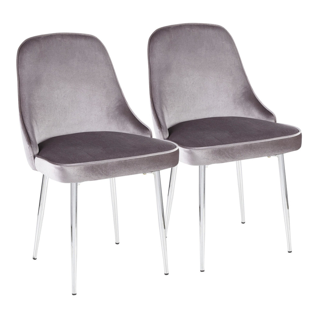 Marcel Contemporary Dining Chair with Chrome Frame and Silver Velvet Fabric by LumiSource - Set of 2