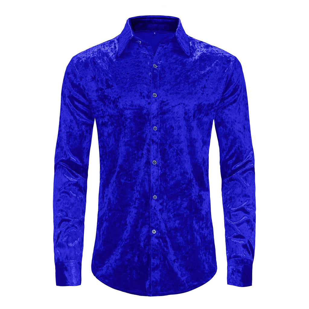 [Shirt Style]High Quality: Men's dress shirts are made of high-quality velvet fabric, which ensures that the button down shirts are comfortable, breathable, soft and smooth.[Long Sleeve Shirt Design]: Men's casual slim fit button down shirt, exquisite velvet fabric solid color design, shirt with full button closure, lapel collar, and 2 real buttons on the cuffs, easy to wear.mens button down long sleeve shirts is best gift for you dad,son,husband.[Shirt Match moment]:Mens velvet shirt has a fashionable and casual design, and the beautiful colors complement each other with formal trousers, jeans, casual pants, jackets, etc., and are colorful. Casual shiny velvet long-sleeve shirt, soft and light fabric, wear mens dress shirts to enjoy romantic and eye-catching party time.[Occasion]: Men's dress shirts are available in white blue red black gray green and other colors, very suitable for casual, daily, business wear, this is the best casual shirt for men's wardrobe. This stylish and handsome velvet long sleeve shirt is the best holiday gift choice for husband, father, son and male friends on Thanksgiving Christmas.