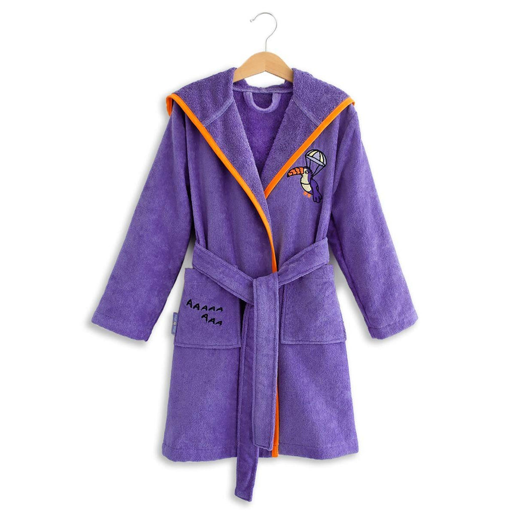 OEKO-TEX CERTIFIED KIDS ROBE: Milk&Moo kids bathrobe is made of 100% Turkish cotton. SINGLE SIZE: This kids robe is in a standard single size for kids aged 5-6. The length (size) is 28 in, 72 cm, the width is 16 in, 42 cm and the arm length is 16 in, 42 cm. It has a knee length design, so kids won't trip on it. It's also super practical thanks to its fixed hood, deep pockets, attached belt and hanging hook. ULTRA SOFT KIDS ROBES: Milk&Moo hooded toddler robe is made with ultra soft fabric, making sure kids are nice and comfortable in it. This high quality design is complete with a generous hood that's perfect for keeping the little ones warm and cozy after bath time, but still allows their arms to be free. It is machine washable. High quality certified cotton holds up very well even after numerous washes. ULTRA ABSORBENT FABRIC: Made from 100 percent cotton, this robe is perfect for absorbing excess water after bath time. It is lightweigth and gives kids the flexibility to run around but still stay warm. Perfect after swimming in the pool, beach or just wearing around the house as well as after normal baths. FUN DESIGN KIDS ROBE: This cute unisex kids bathrobe has an adorable animal Flying Toucan on it. You will love the cute embroidery detailings and matching colors on the design. Also available in Skater Cheetah (yellow) , Flying Toucan (blue) and Cool Coala (turquoise) styles.