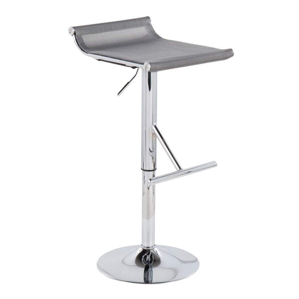 Mirage Ale Contemporary Adjustable Bar Stool in Chrome and Silver Mesh by LumiSource