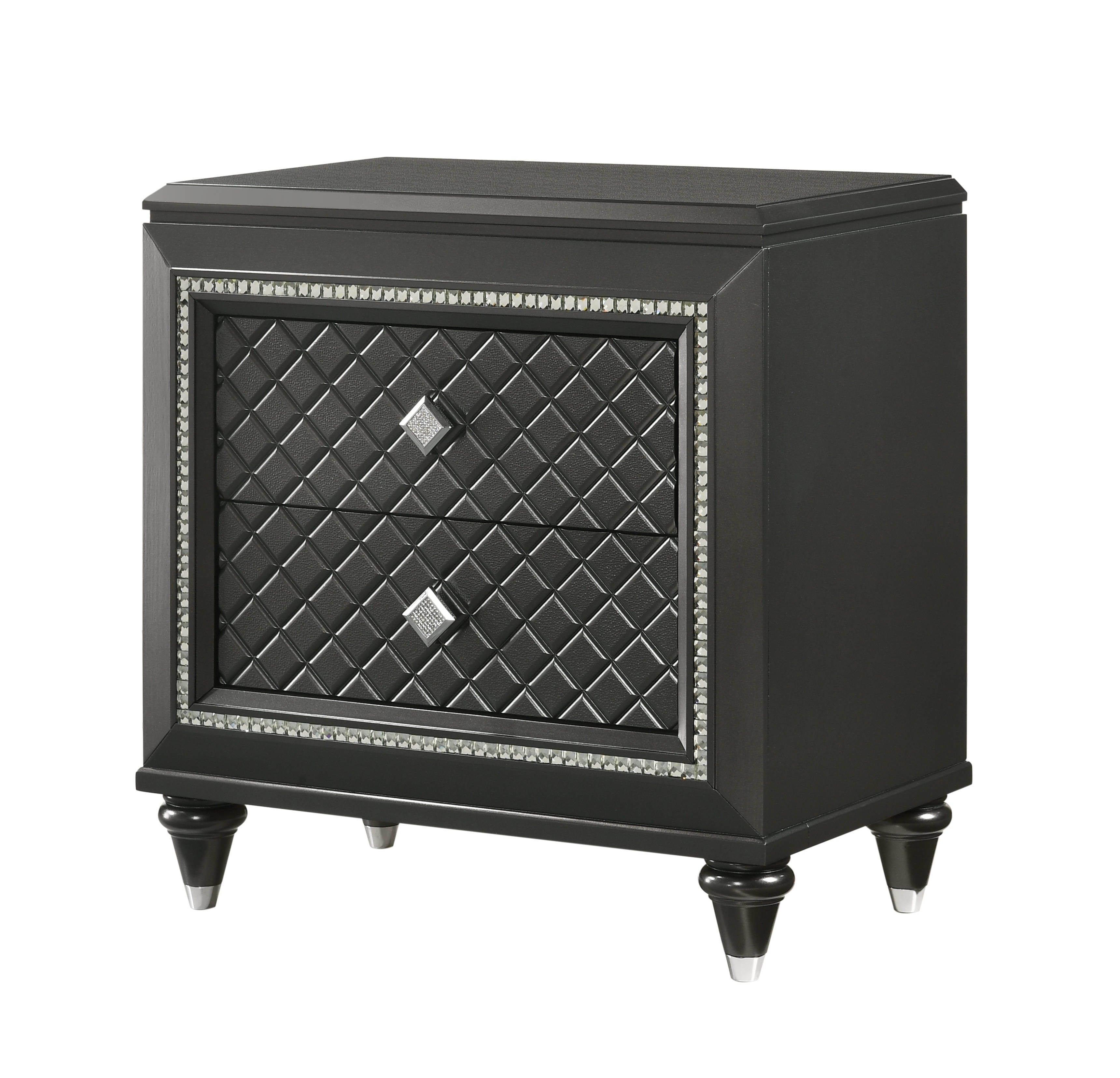 This Giovani nightstand adds a touch of understated sophistication to your master suite. It comes in a dark finish and features silver accents; carving detailing; two drawers which are perfect for keeping bedtime books or cell phones.