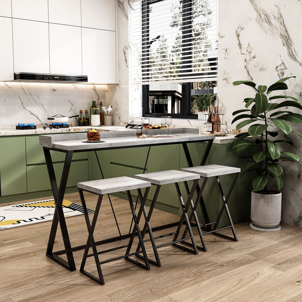 | Product Name | Modern Design Kitchen Dining Table, Pub Table with X-Shaped Table Legs, Long Dining Table Set with 3 Stools, Easy Assemble |