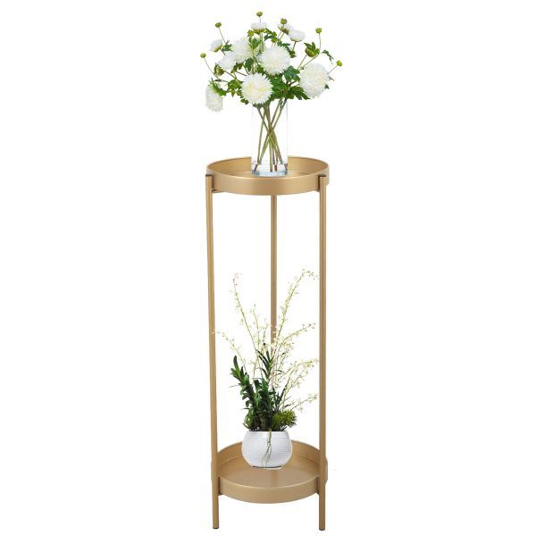 [Stylish Plant Stand]: Adopted luxurious golden finish and streamlined frame, this 2-tier plant stand adds elegance to your living room, bedroom, sunroom, patio or other outdoors.