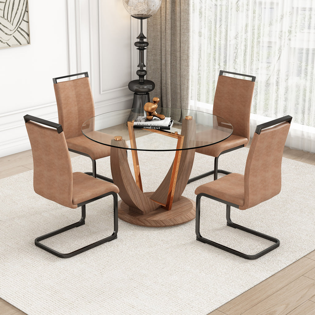 This circular tempered glass desktop is equipped with MDF wood texture sticker legs and base, and the coffee table combines a fashionable and modern appearance with elegance, adding a fashionable focus to your living space.