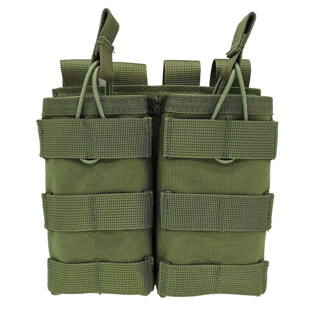 TRIPLE OPEN-TOP MAG POUCH This mag holder will carry two mags, suitable for most of the small caliber rifle magazine, including but not limited to 30-round M4/M16 magazines, HK416 magazines Specifications Material: 1000D Nylon |