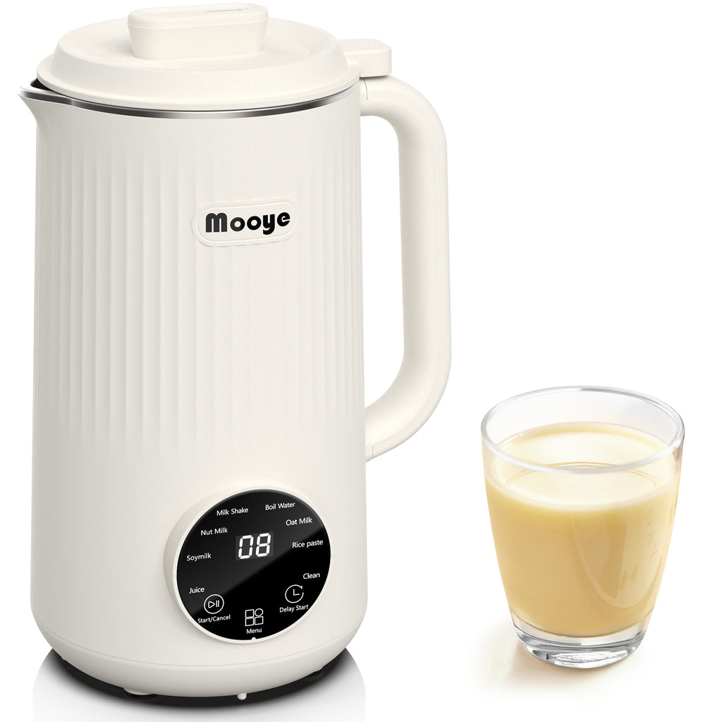 1.35oz Large-Capacity: 35oz(1L) large capacity Mooye nut milk maker for making a variety of beverages in one batch. You can produce 35oz(1L) of fresh milk or beverage using nuts, soybeans, fruit, and vegetables in minutes, perfect for 3-4 people.