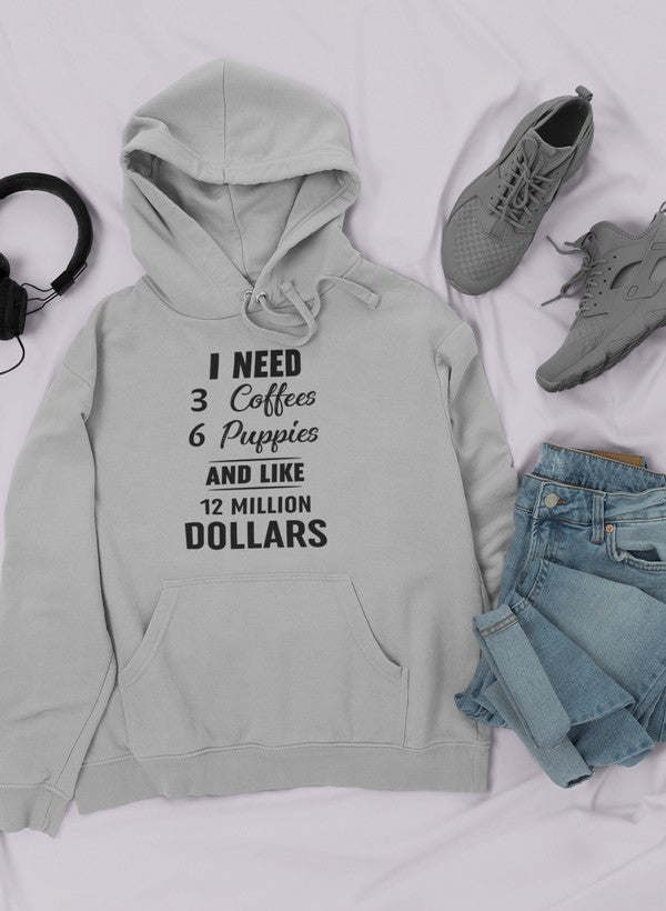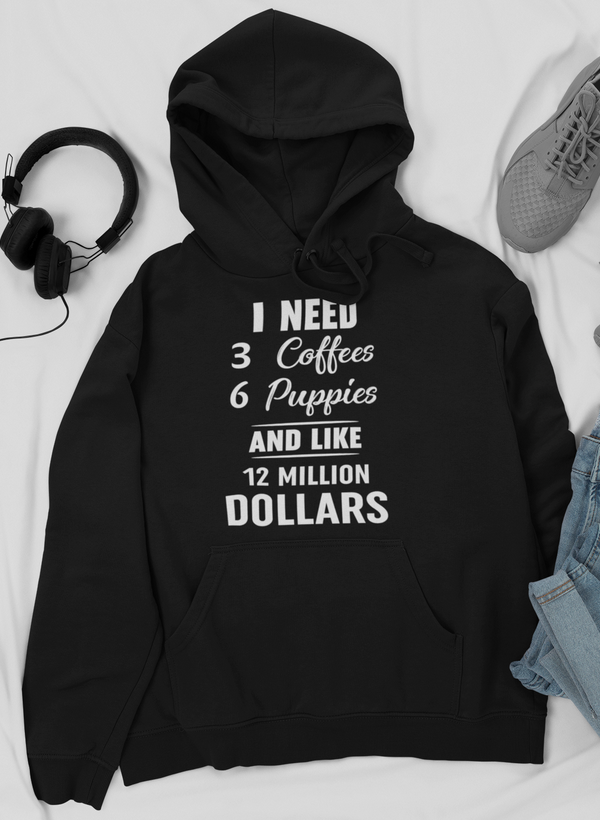 I Need 3 Coffees 6 Puppies And Like 12 Million Dollars Hoodie