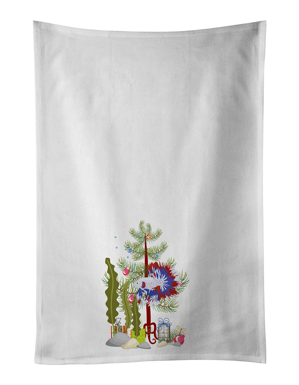 Kitchen Towel Set of 2 featuring breed specific Comb Tail Betta artwork. Celebrate Christmas with this Christmas Kitchen Cotton Towels. This Kitchen Towel Set of 2 is from Caroline's Treasures collection Merry Christmas Tree. Spruce up your kitchen decor with Caroline's Treasures Decorative White Kitchen Towel Set. This set of two dish towels showcases beautiful artwork from one of our talented artists, making them both practical and visually appealing. These towels are crafted from 100% cotton, offering excellent absorbency and durability, making them ideal for any kitchen task. Each white towel measures 19 inches by 28 inches, providing ample coverage for drying dishes or wiping up spills. The standout feature of these towels is the full-color artwork design printed on each one. They can serve as a vibrant accent in your kitchen, turning a functional item into a delightful piece of decor. When it comes to care, these towels are machine washable in cold water and can be dried on low heat. Remember to always use a pressing cloth when pressing the design, and avoid using bleach on the decorated towel. The Decorative White Kitchen Towel Set makes a great gift or a stylish addition to your own kitchen. This Kitchen Cotton Towels is from Caroline's Treasures Fish category of products.