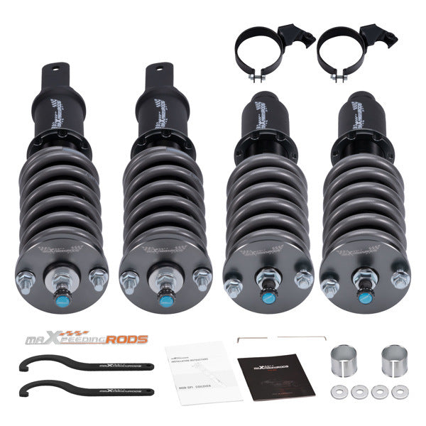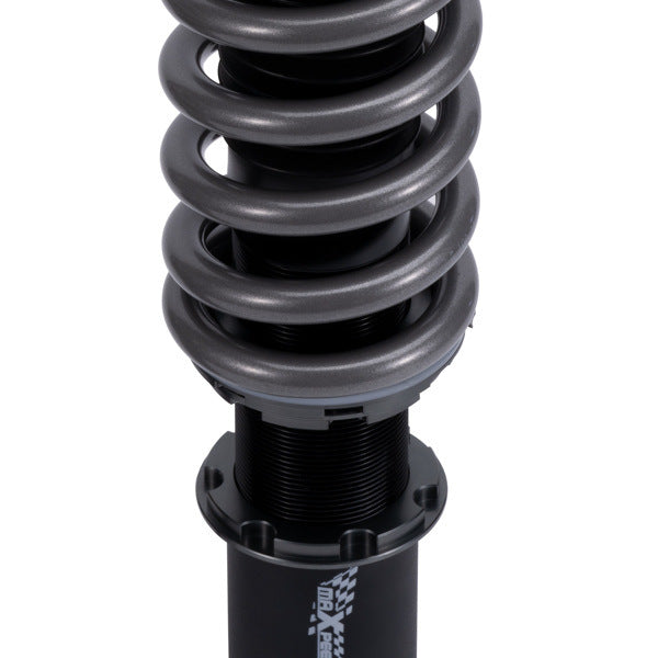 Maxpeedingrods COT7 coilovers are designed and developed for all motoring enthusiasts that want excellent handling without sacrificing comfort. This suspension system is ideal for daily driving and occasional, light track use. High quality components are adopted to ensure product durability and stability. It features with racing damping oil, upgraded racing spring, full length height adjustable, 24 precise levels of damper adjustment and pillow ball front mount, which offers you a lowered stance and enhanced handling. Each application is fully test fitted and completely road tested to guarantee all our customers perfect performance and comfort expectations.
