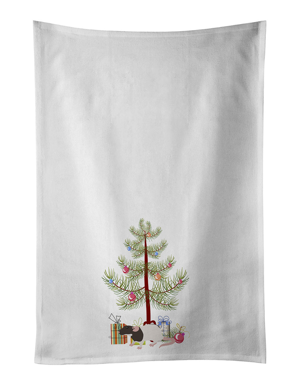 Kitchen Towel Set of 2 featuring breed specific Dumbo Rat artwork. Celebrate Christmas with this Christmas Kitchen Cotton Towels. This Kitchen Towel Set of 2 is from Caroline's Treasures collection Merry Christmas Tree. Spruce up your kitchen decor with Caroline's Treasures Decorative White Kitchen Towel Set. This set of two dish towels showcases beautiful artwork from one of our talented artists, making them both practical and visually appealing. These towels are crafted from 100% cotton, offering excellent absorbency and durability, making them ideal for any kitchen task. Each white towel measures 19 inches by 28 inches, providing ample coverage for drying dishes or wiping up spills. The standout feature of these towels is the full-color artwork design printed on each one. They can serve as a vibrant accent in your kitchen, turning a functional item into a delightful piece of decor. When it comes to care, these towels are machine washable in cold water and can be dried on low heat. Remember to always use a pressing cloth when pressing the design, and avoid using bleach on the decorated towel. The Decorative White Kitchen Towel Set makes a great gift or a stylish addition to your own kitchen. This Kitchen Cotton Towels is from Caroline's Treasures Rodents category of products.