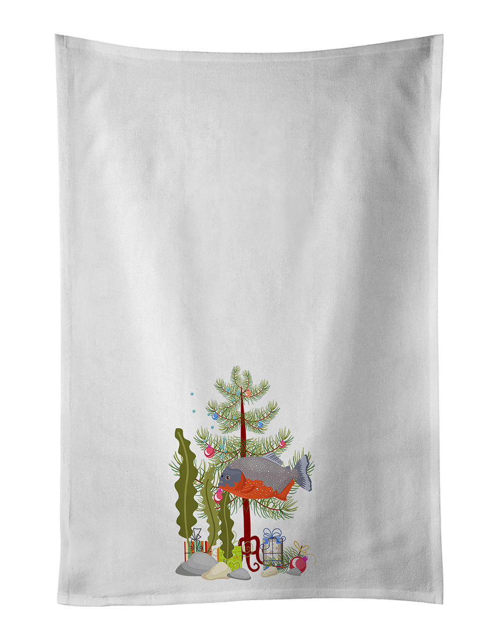 Kitchen Towel Set of 2 featuring breed specific Piranha artwork. Celebrate Christmas with this Christmas Kitchen Cotton Towels. This Kitchen Towel Set of 2 is from Caroline's Treasures collection Merry Christmas Tree. Spruce up your kitchen decor with Caroline's Treasures Decorative White Kitchen Towel Set. This set of two dish towels showcases beautiful artwork from one of our talented artists, making them both practical and visually appealing. These towels are crafted from 100% cotton, offering excellent absorbency and durability, making them ideal for any kitchen task. Each white towel measures 19 inches by 28 inches, providing ample coverage for drying dishes or wiping up spills. The standout feature of these towels is the full-color artwork design printed on each one. They can serve as a vibrant accent in your kitchen, turning a functional item into a delightful piece of decor. When it comes to care, these towels are machine washable in cold water and can be dried on low heat. Remember to always use a pressing cloth when pressing the design, and avoid using bleach on the decorated towel. The Decorative White Kitchen Towel Set makes a great gift or a stylish addition to your own kitchen. This Kitchen Cotton Towels is from Caroline's Treasures Fish category of products.