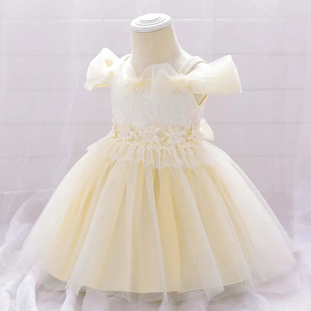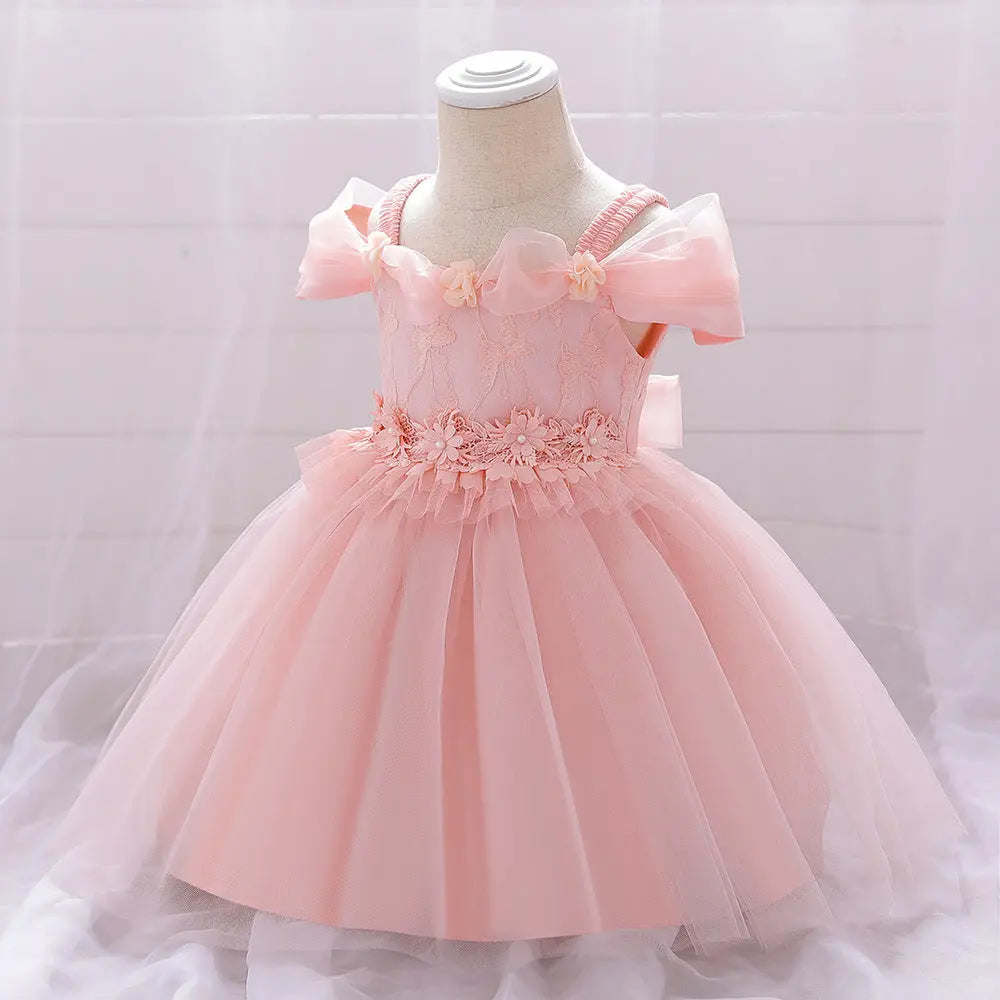 A timeless classic: This Newborn Baby Girl Birthday Baptism Dress enchants with its unique one shoulder puff sleeves and dreamy princess silhouette. Luxuriously soft; this heirloom-worthy dress brings elegance and sophistication to any special occasion.