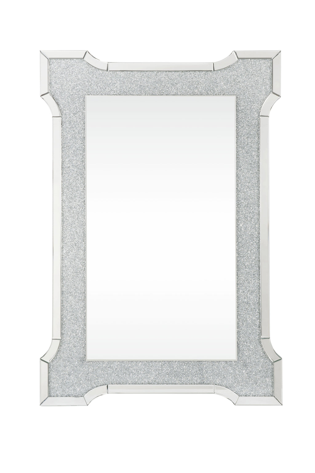 Romance : The Nowles mirror offers function and style to any modern setting. This rectangular wall mirror features beveled mirrored border trim with faux diamonds inlay that glimmer and glitter in the available light. Its frame crafted from durable engineered wood. The perfect complement for any glam style that naturally attracts the eye.