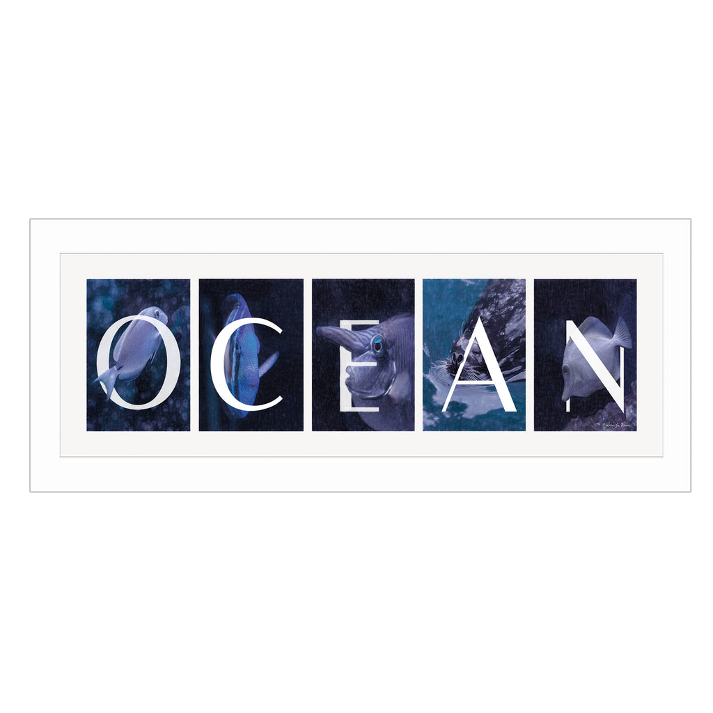 Ocean-20x8 framed print in a decorative white frame by artisan Robin Lee Vieira•Women Owned (WBE)•Textured Artwork with a 'rolled on' acid free acrylic coating to create a canvas painting effect. No glass is necessary.•UV protectant coating protects artwork from fading.•Arrives Ready to Hang