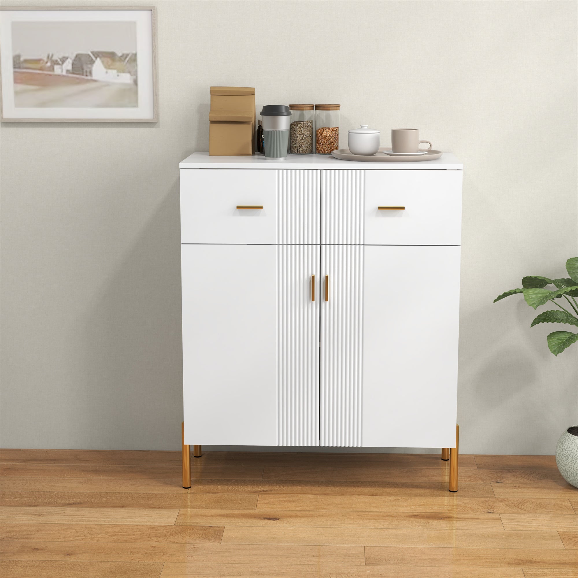 ❤ Raised Vertical Stripe Decoration: The sideboard features a white gold decorative finish for a stylish and luxurious look, and the sideboard surface is decorated with raised vertical stripes to add texture and visual interest.