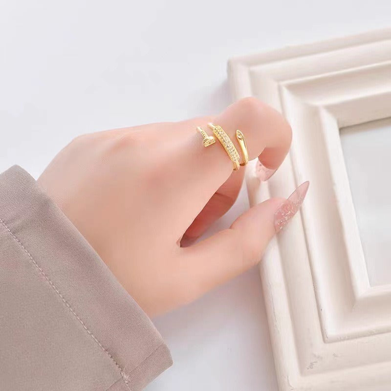Open Metal Nail Ring with Diamonds