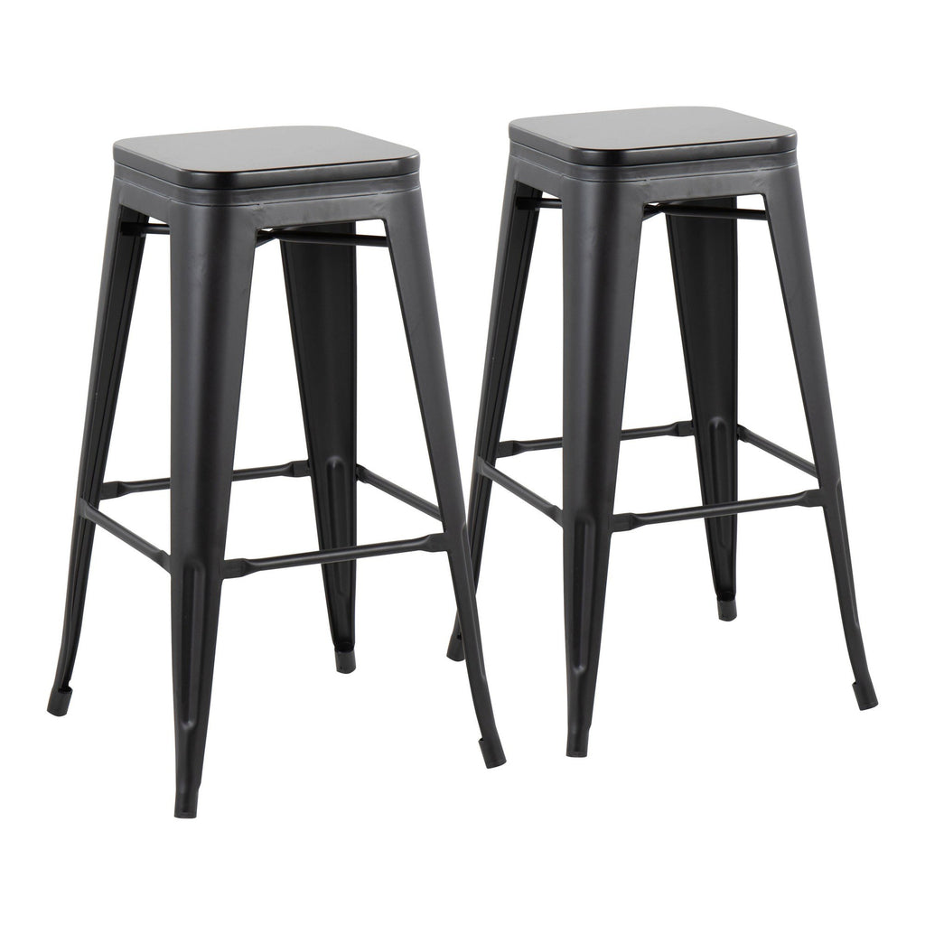 Oregon Contemporary Barstool in Black Steel and Black Wood by LumiSource - Set of 2