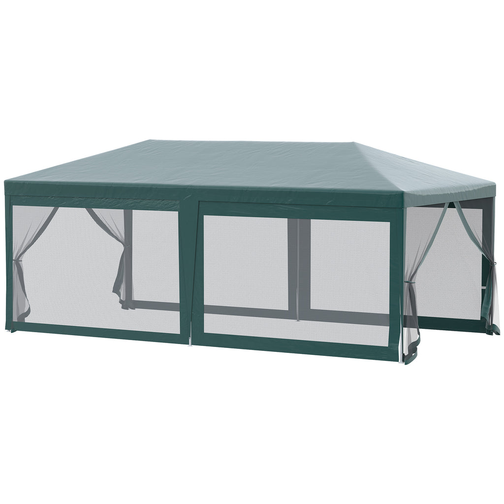 Outdoor Tent Gazebo Canopy Dimensions: Overall Dimensions: 19.5'L x 9.7'W x 8.4'H, Side Panel Size: 9.25'L x 6.5'W. Note: We advise customers to never leave patio tent up overnight or under bad weather conditions.
