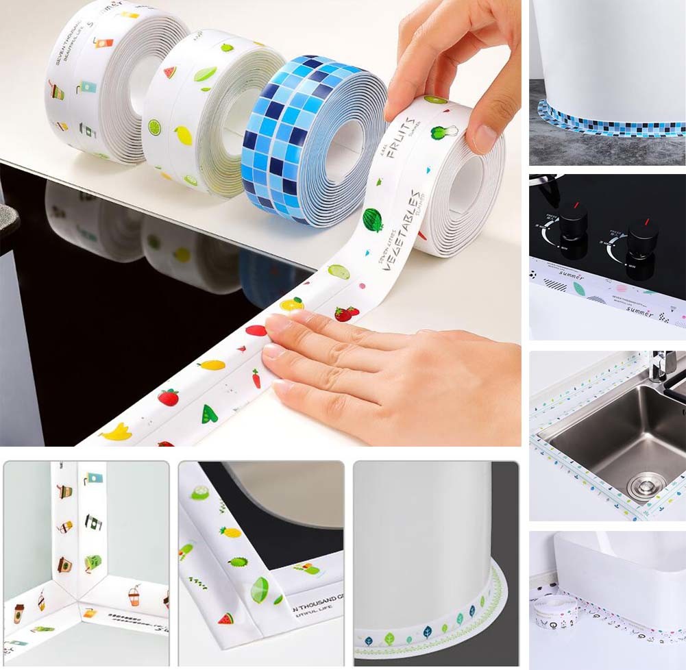 Simply peel and press the self-adhesive strip to the surface in minutes. The creases in the middle and flexible material can be adapted to any angle. Cut out the caulk strip as your requirement. This PVC caulk tape is waterproof, oil-proof, sturdy and durable. The surface is smooth, water stains and oil stains can be easily wiped away. Ideal for sealing the seams of kitchen countertop, gas stove, sink, washbasin, bathtub, toilet bottom and wall corner, keeping your kitchen and bathroom clean and tidy. The tape comes with a nice pattern, it can also be used as a decorative line for your home.