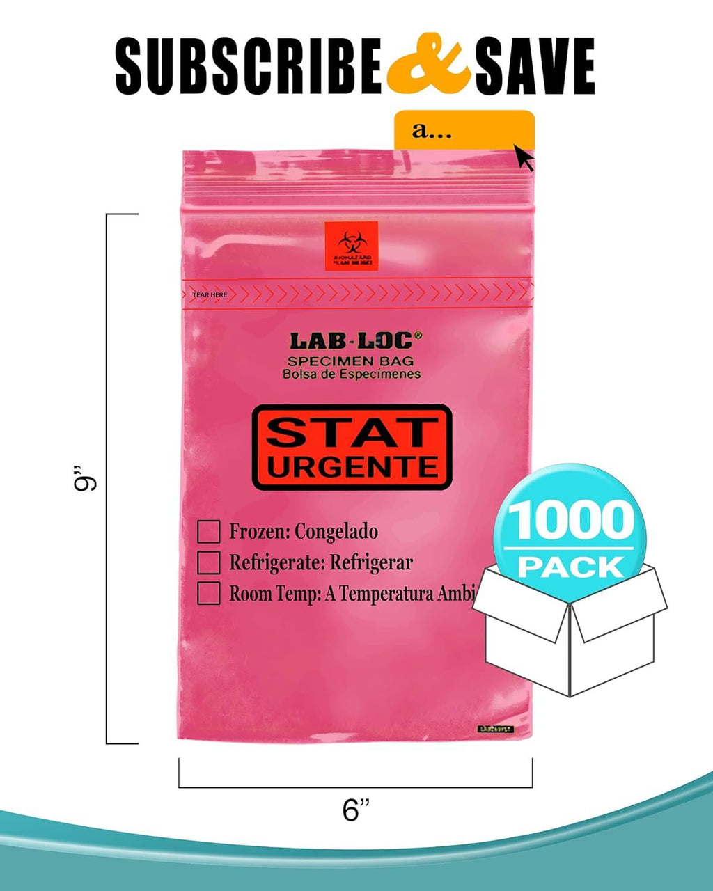 Pack of 1000 Tamper-Evident Specimen Bags "STAT"; Yellow 6 x 10. Polyethylene Bags 6x10. Pull Tab Adhesive Closure 1.80 mil Thick. Removable Biohazard Symbol. Plastic Bags for Health Needs.