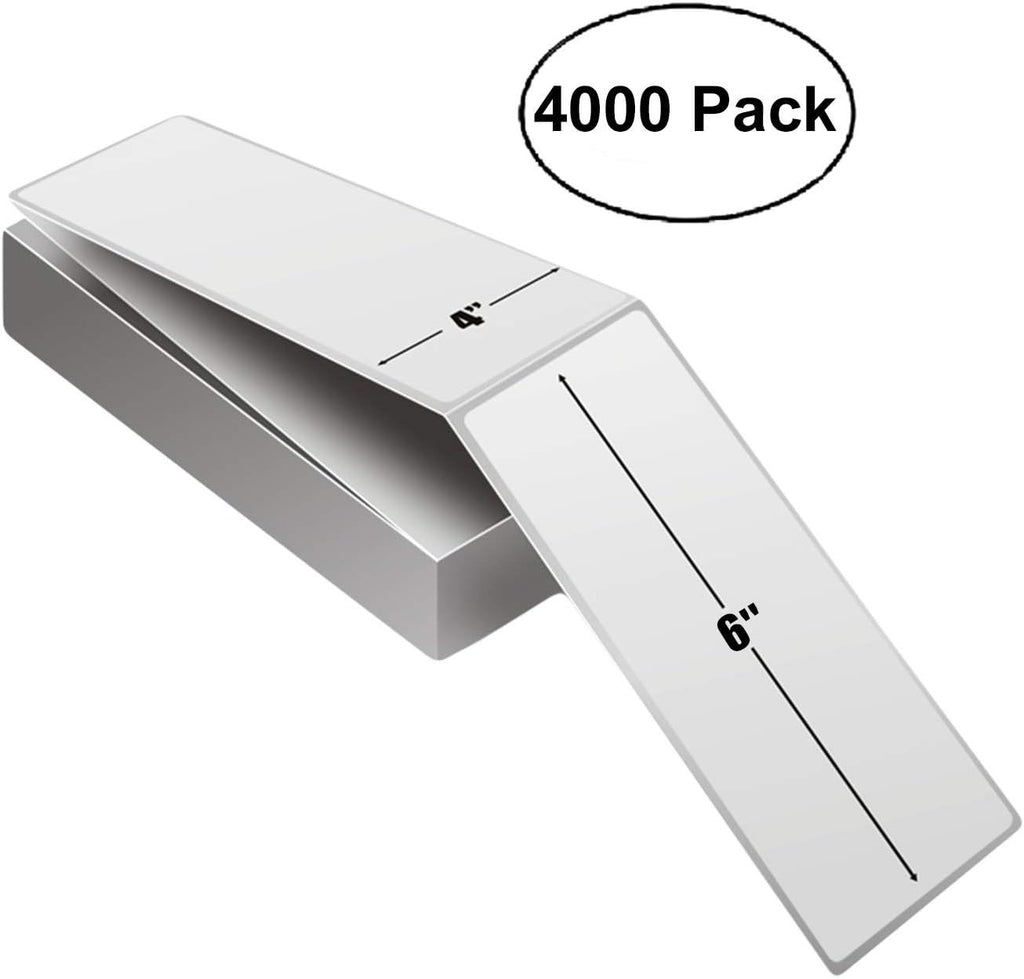 Pack of 4000 Direct Thermal Labels 4 x 6 Very Sticky. Made in The USA. Fanfold Thermal Shipping Labels 4x6. Blank Mailing Labels Сompatible with UPS; FedEx; USPS.
