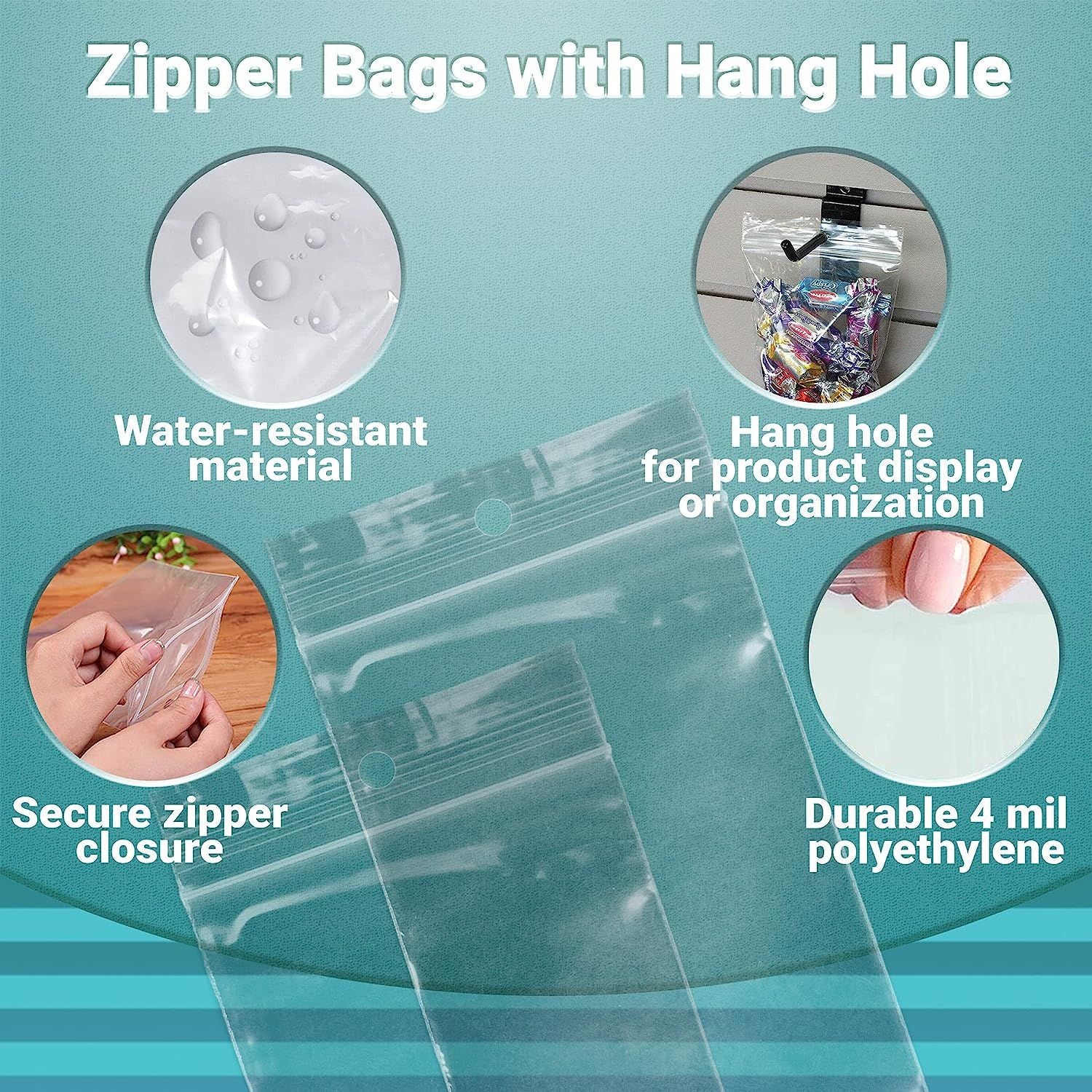 Pack of 100 Slider Zipper Bags 6.5 x 6. Clear Poly Bags 6 1/2 x 6. Thickness 3 mil. Polyethylene Bags for Packing and Storing. Plastic Bags for Industrial; Food Service; Health Needs.