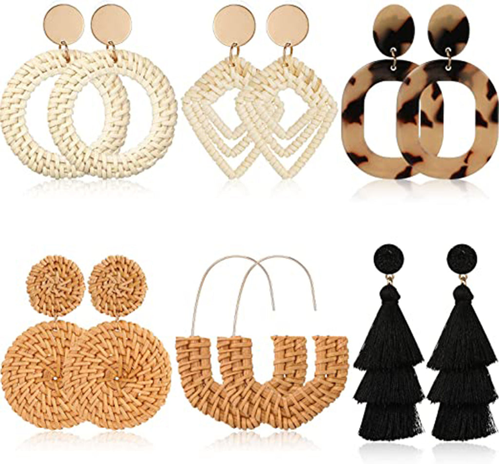 6 Pairs in 1 set: 6 pairs of handmade geometric earrings in 1 set for you, including 4 pairs of rattan earrings in different shapes, 1 pair of acrylic earrings, and 1 pair of tassel earrings, enough to match with different outfits in different occasions.