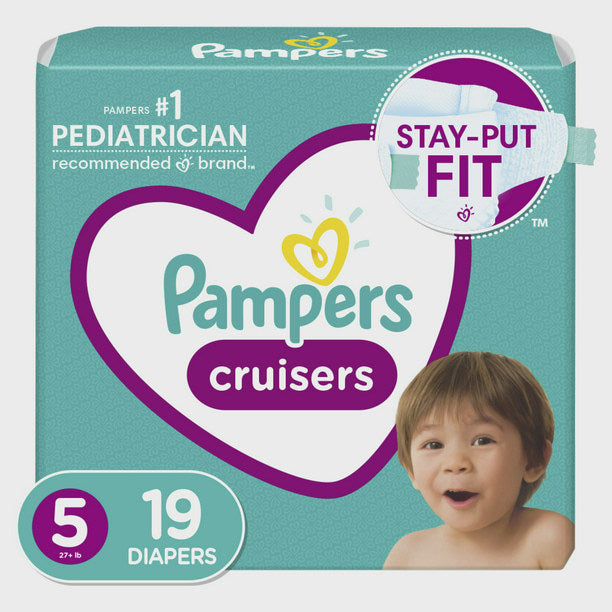 Long-lasting fit and protection for the most active babies! Pampers Cruisers have 2x stretchier sides* for a comfy, secure fit that stays put, even when they don't. With Dual Leak-Guard Barriers that gently seal around the legs and bottom to stop leaks where they happen most. Pampers Wetness Indicator lets you know when your baby might need a change. Cruisers come in a variety of stylish prints, all with trusted Pampers All Night Protection. Plus, Pampers Cruisers are hypoallergenic and free of parabens and latex,** so they're gentle on your baby's skin. Pampers Cruisers diapers are available in sizes 3, 4, 5, 6, and 7.