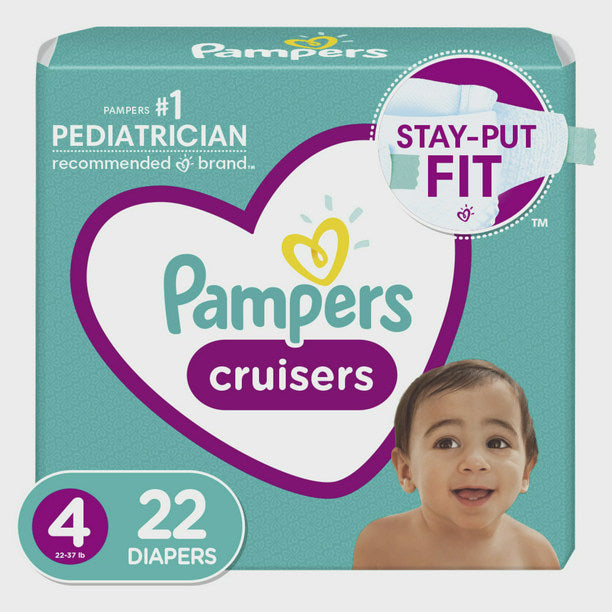 Long-lasting fit and protection for the most active babies! Pampers Cruisers have 2x stretchier sides* for a comfy, secure fit that stays put, even when they don't. With Dual Leak-Guard Barriers that gently seal around the legs and bottom to stop leaks where they happen most. Pampers Wetness Indicator lets you know when your baby might need a change. Cruisers come in a variety of stylish prints, all with trusted Pampers All Night Protection. Plus, Pampers Cruisers are hypoallergenic and free of parabens and latex,** so they're gentle on your baby's skin. Pampers Cruisers diapers are available in sizes 3, 4, 5, 6, and 7.