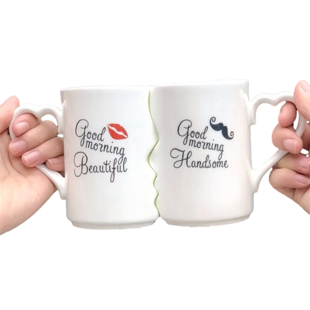 2.Adorable Design: The mugs showcase an endearing design of a couple sharing a kiss, adding a sweet and romantic touch to your morning coffee or tea routine. Express your love with every sip.
