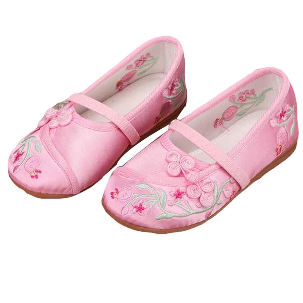 Pink - Chinese Traditional Embroidery Shoes Flower Loafers Girls Ballet Flats
