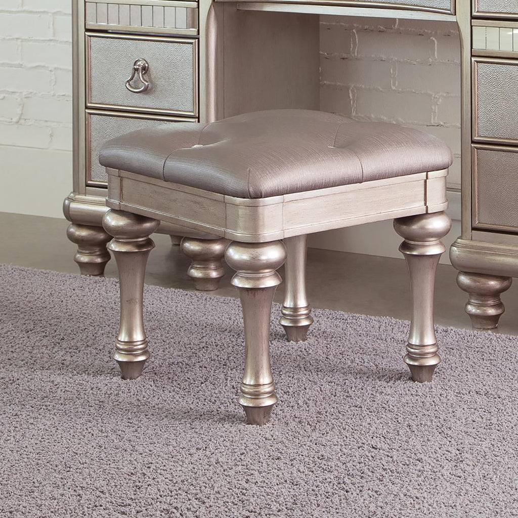 Showcases a glamorous effect through a metallic finish with a highlight glaze, adding a touch of elegance to the stool's appearance