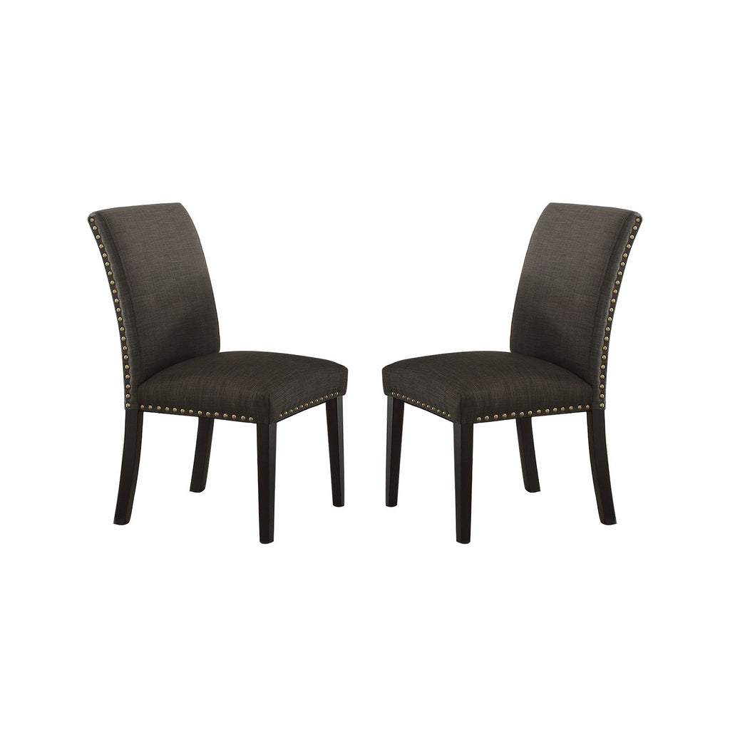 Simplicity dining is defined by this casual dining chair. Each chair features an upholstered frame with stud trim and wooden leg supports. Soft poly fiber over plush padding offers comfort while a high back provides support and encourages correct posture. Nailhead trim accent adds extra appeal.