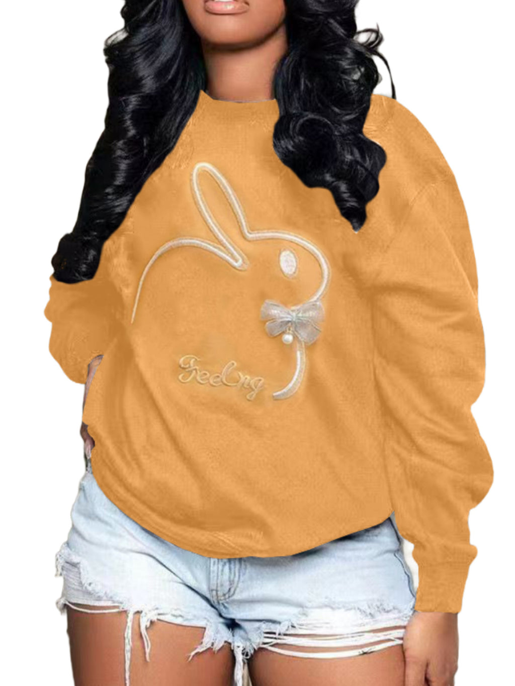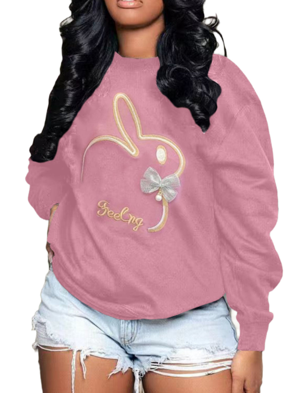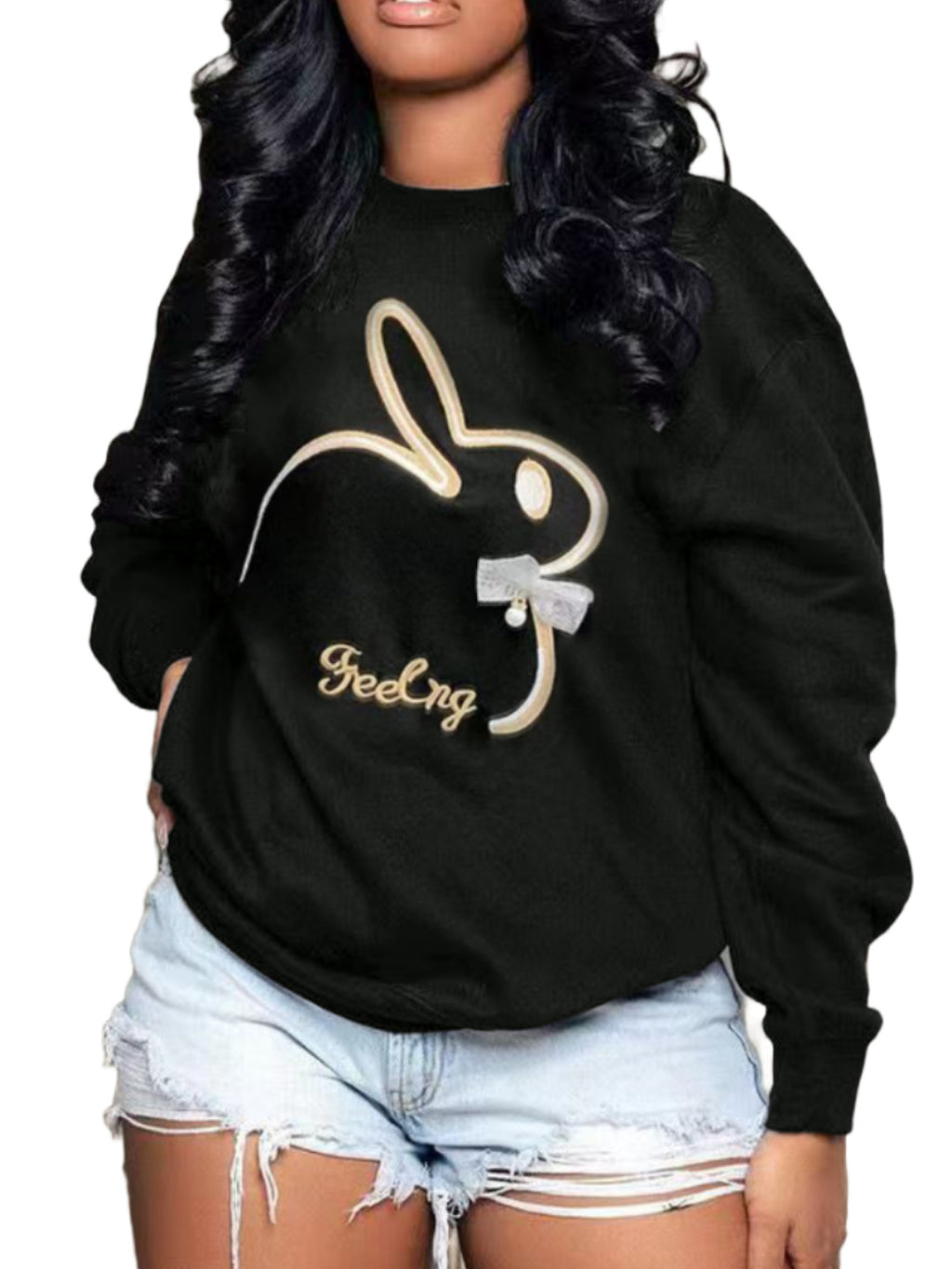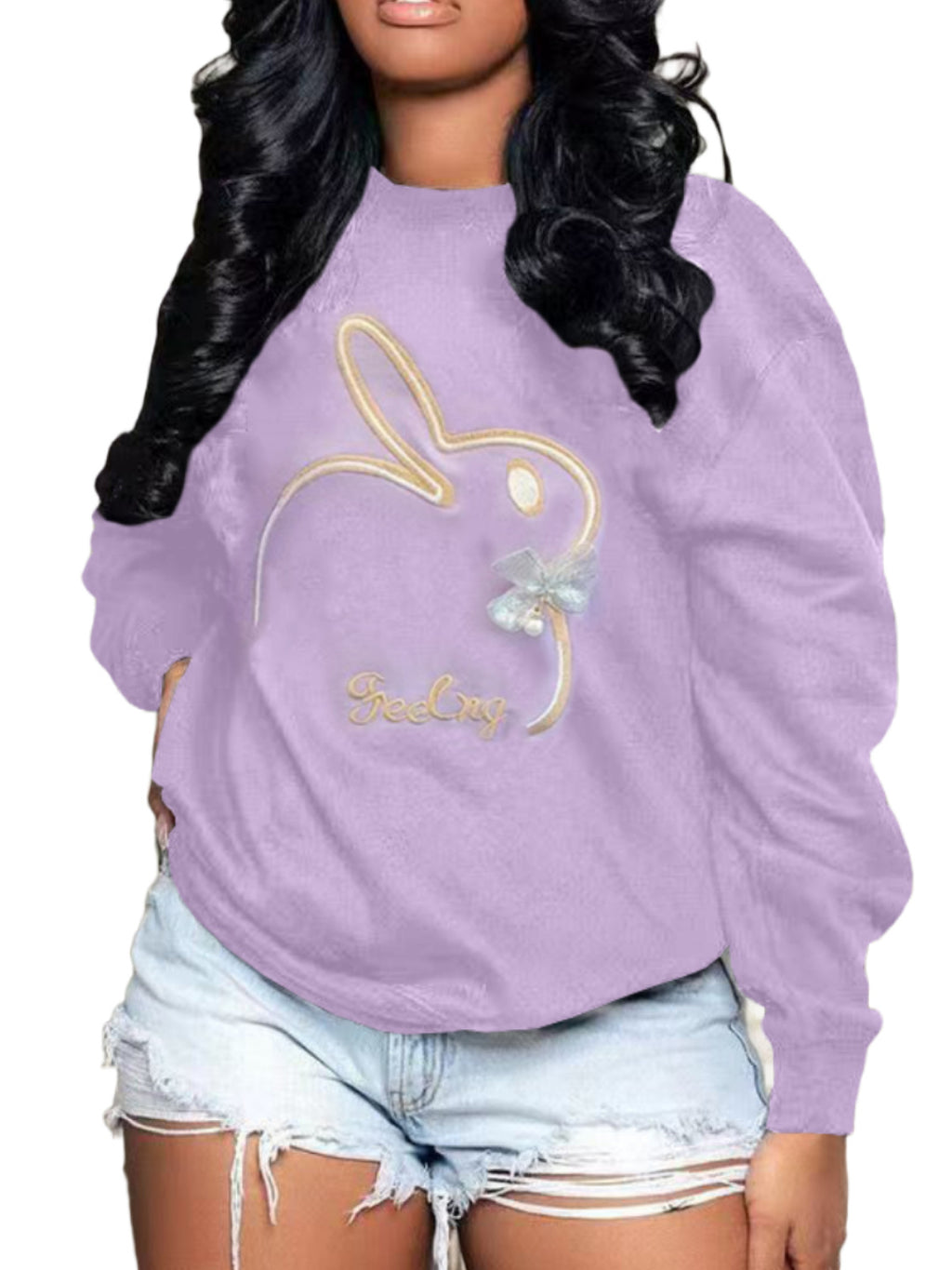 Plus Size Embroidery O Neck Long Sleeve Sweatshirts Top