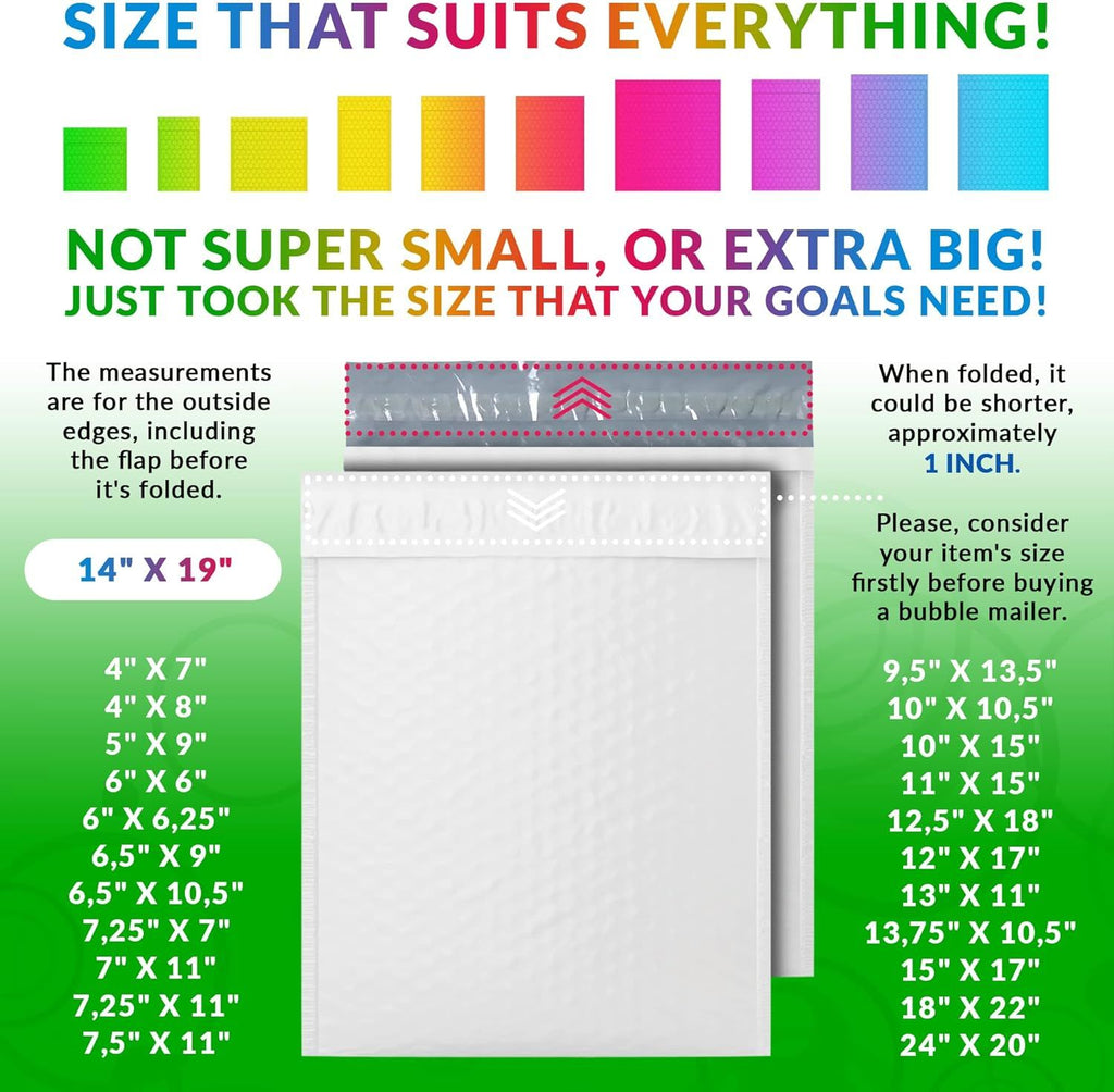 Poly Bubble Mailers Padded 14 x 19, White Padded Envelopes Waterproof 5 Pack, Peel and Seal Bubble Envelopes, Self Seal Padded Mailers for Shipping, Packing, and Mailing