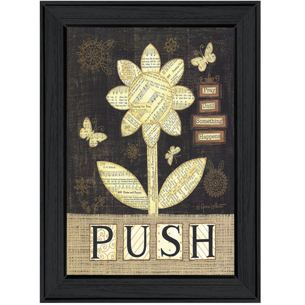 ALP1077A-405 "Pray Until Something Happens" is a 11" x15" framed print by artist Annie LaPointe. This artwork features a flower, PUSH in large letters and the words Pray Until Something Happens. This totally American Made wall decor item features an attractive black frame, a textured canvas like finish so no glass is necessary and is ready to hang. •Women Owned (WBE)•Textured Artwork with a 'rolled on' acid free acrylic coating to create a canvas painting effect. No glass is necessary.•UV protectant coating protects artwork from fading.•MDF moulding adds natural beauty to the framed art. Frame is keyholed for ease of hanging.