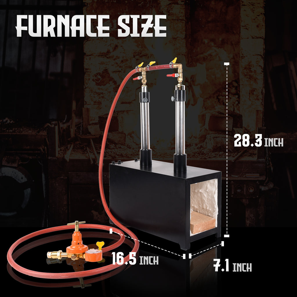 Large Size: Our propane furnaces feature a generous working space that provides ideal central point exposure of the flame due to the proper chamber volume.internal dimensions 5.6"W x 5.6"H x 16"L (140mm x 140mm x 400mm).