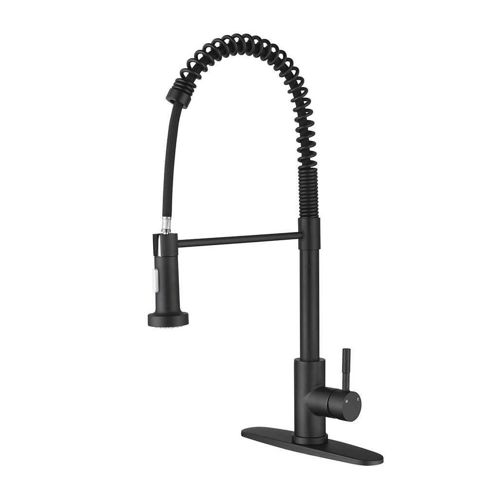 The pull-down sprayer spring-loaded kitchen faucet has a simple and stylish design that easily matches most sinks. Two water outlet functions (stream, spray) to meet your various water use situations. The high-arc nozzle rotates 360 degrees to provide all-round cleaning, and the single-handle design allows easy control of water temperature and flow rate. For daily cleaning, just clean the faucet with a rag and it will look like new.