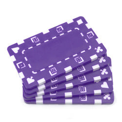This set of five European-style rectangular poker plaques are a great addition to any poker game. These purple plaques have an outer edge decorated in a suited pattern with dice in between each suit.