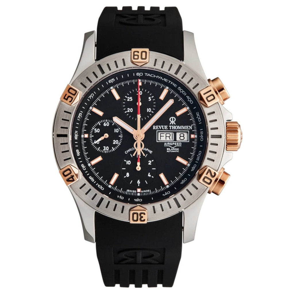 Revue Thommen 16071.6859 Men's 'Airspeed' Black Dial Day-Date Chronograph Automatic Watch