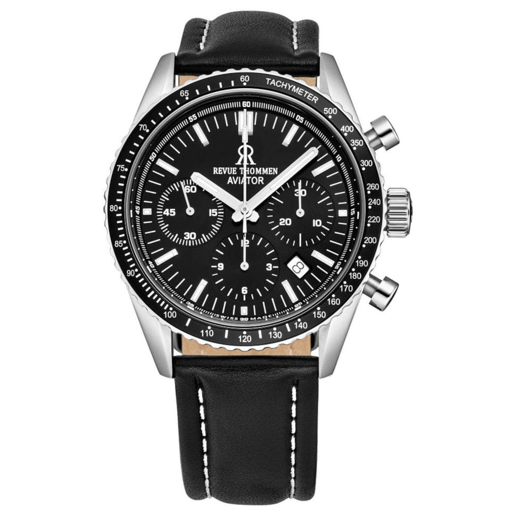 Revue Thommen Men's 17000.6537 'Aviator' Black Dial Leather Strap Chronograph Automatic Watch